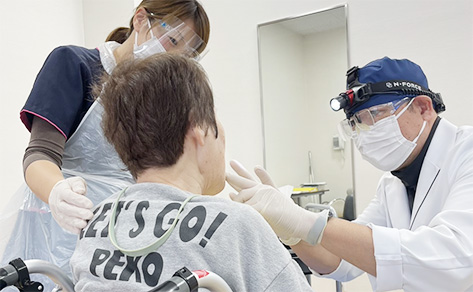また、訪問歯科にも力を入れており、例えば足腰が弱くなり通院が困難になった方に対しても、施設・在宅での診療継続が可能です。